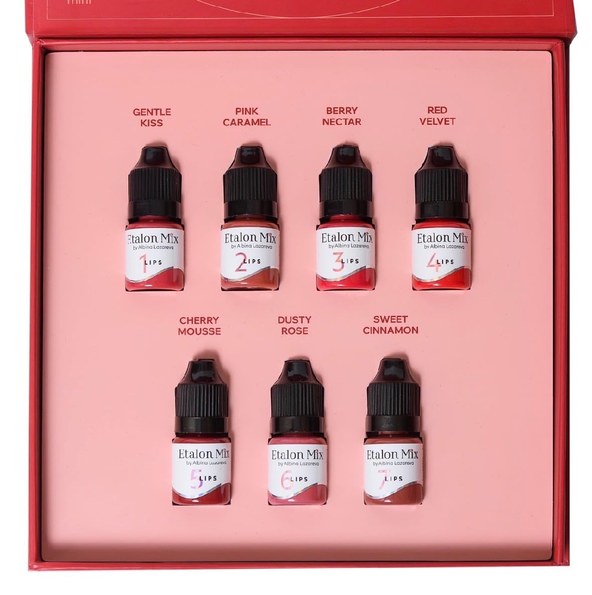このコンプリートセットには、柔らかく鮮やかな発色、そして自然な治癒効果をもたらすエタロンミックスハイブリッドリップカラー全7色が含まれています。ピグメントはREACH規則に完全準拠し、非常に安定しており、水彩リップ、ピクセルリップ、ベルベットリップ、フルリップシェーディングなど、あらゆるリップテクニックに最適です。セットは、5mlボトル入りの豪華なマグネットケース入り、またはマグネットケースなしの15mlセットでご用意しています。